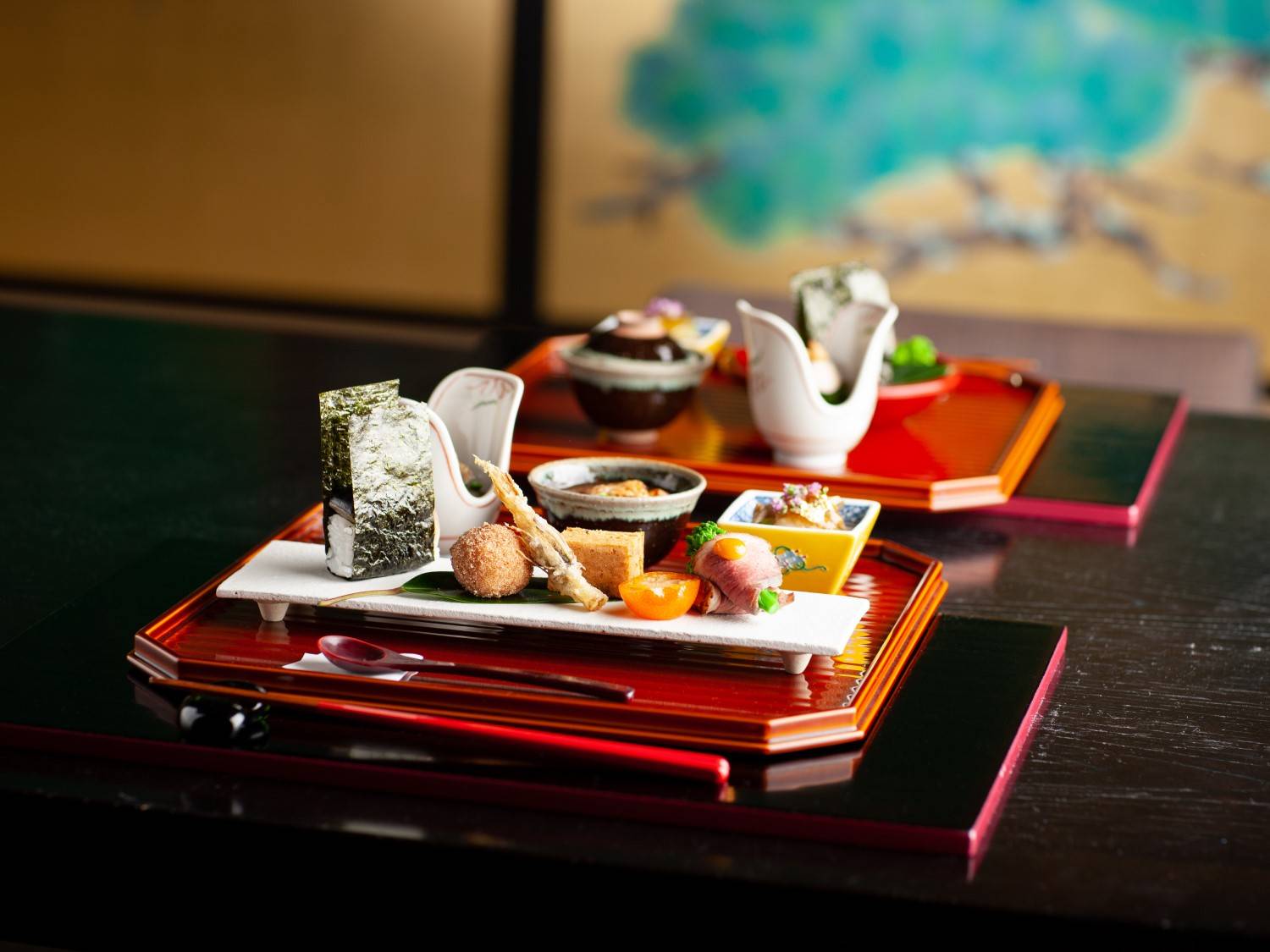 【前菜】 蕪玉地蒸し 焼餅 桜海老餡 黒胡椒 菊菜白和え 刀根柿 赤蒟蒻 菊芋 雲子柚香浸し 黄韮 水菜 紅葉卸し 合鴨香草蒸し 焼き林檎 ハニーマスタード 鰻小袖寿司 牛蒡 山椒 百合根真砂揚げ 慈姑煎餅 【椀物】 ずわい蟹薄葛仕立て 菊花湯葉真丈 舞茸 三つ葉 振り柚子 【造り】 本マグロ 鮃 秋鯖炙り あおり烏賊 天城産本山葵 あしらい 【焼物】 車海老と帆立の胡麻グラタン 伊豆産椎茸 蓮根 銀杏 おかき 山葵 割り醤油 【強肴】 小鍋仕立て 黒毛和牛 里芋 九条葱 木の子いろいろ 黒七味 ※特選和牛「静岡そだち」使用 【食事】 零余子釜炊き御飯 地金目鯛酒盗焼き 焼き芹 ※会津産コシヒカリ 【留椀】 赤出汁 【香物】 盛り合わせ 【水菓子】 紅茶のバスクチーズケーキ 洋梨 早生密柑グラニテ |